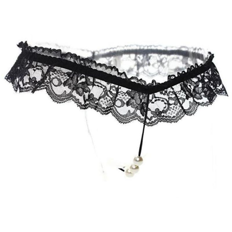 (情趣内衣)激情蕾丝开裆T裤女性低腰透明内裤蕾丝按摩开档性感丁字裤(黑色)